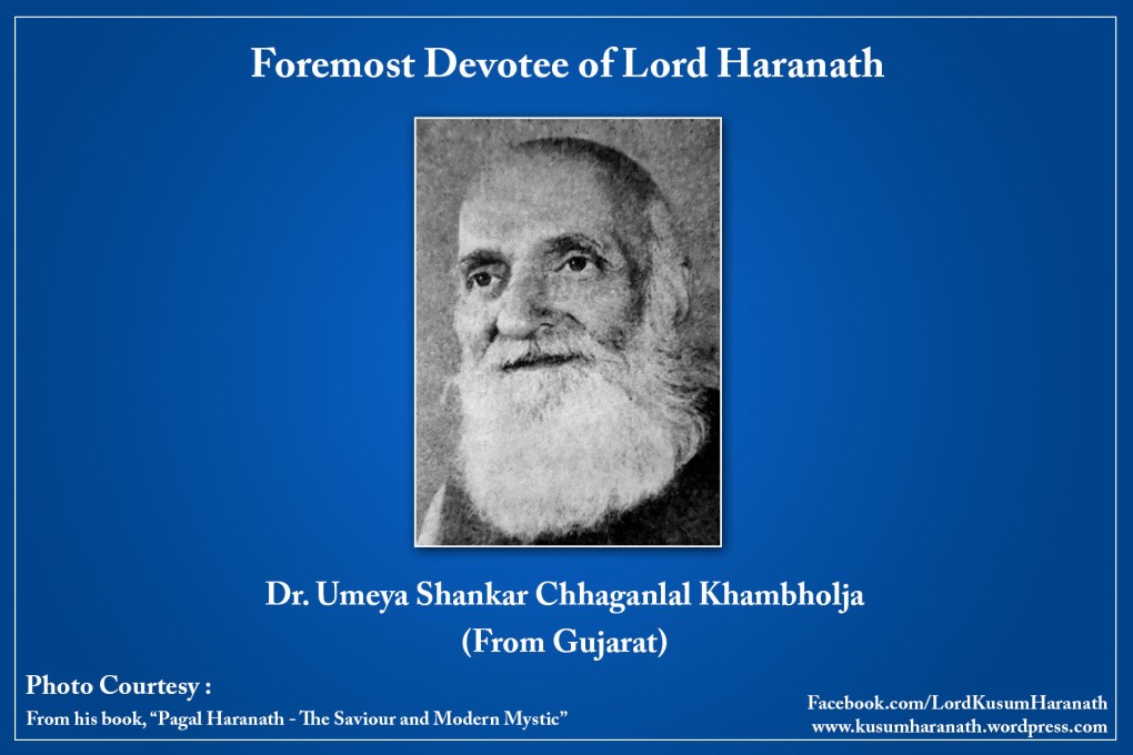 Khambholja was a medical student in the year 1912 AD at Ahmedabad. He was 18 years old then. Born in a Brahmin family, he had some liking for religion in his childhood; but as he grew up he lost faith in religion. During college career, his mind became unsettled and he did not pay attention to his studies. He used to discuss regarding future course of his life with his dissection companion Vyas. Khambholja’s cousin passed the examination “Sanatana Dharma” conducted by Dr.Anni Besant and got as a prize the book containing the life and letters of Haranath in Gujarati. The book mentions number of miracles done by Haranath and His letters, which were full of love for His devotees. Khambholja was very much impressed by the book. He took out the picture of Haranath from the book and placed it in the cupboard and started praying. He also started taking the Name of Krishna. Of course his motive for repeating the Name was success in his examination.