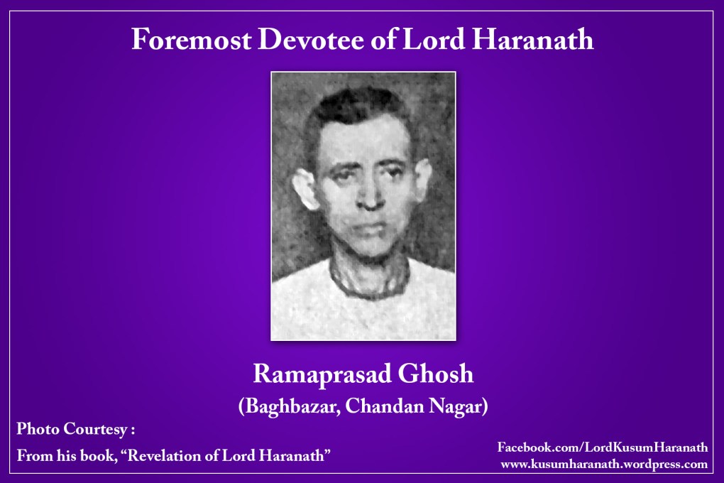 Rama Prasad is the son of Tara Prasad Gosh and younger brother of Tamalini Ma. Rama Prasad used to attend Sankirtan on every Saturday along with his father. When he was 13 years old, he felt an urge to see God. Before going to bed, he used to pray to God to appear before him. One day he wept on and on and fell asleep. On that day in the dream, he saw a wonderful splendorous figure of Haranath smiling at him. He said, “Do not be distressed. I am coming soon.” Rama Prasad started thinking always of that figure only. A letter from Haranath came, stating, “Father, do not be anxious, I am always near you. Take Name, do not forget, and mind your lessons. Whenever you get leisure take Krishna’s Name instead of indulging in vain plays.” Rama Prasad used to read that letter several times a day. Days passed. One Saturday when Nama Sankirtan was going on in his house, Rama Prasad was overwhelmed with emotion. At that time he saw Haranath dancing in the midst of the Sankirtan party. He rushed forward to catch Him but fainted. When he regained consciousness, he heard the devotees remarking that on that day they had such a joy as though Lord Himself participated in the Sankirtan. Rama Prasad was convinced that what he saw was not an illusion.