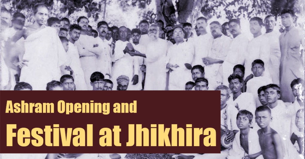Jhikhira festival : Govardhan Sen, Anadi Mukherji and his brother and some other young gentlemen of the locality were the chief organisers of this festival, They worked in Calcutta. They came in contact with Thakur in the bathing ghat of the Ganges where Thakur used to bathe when He came to Calcutta. Gradually they became devotees and they had the desire to take Thakur to the village and hold a joyous festival. Thakur fulfilled their desire. Kishore Mohan Roy, Zemindar of Jhikhira promised to construct an Ashram. It was settled that the foundation of the Ashram will be laid during the festival of this year.